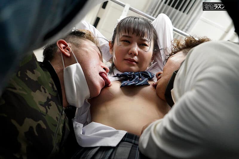標的は制服姿の小さくて真面目そうな少女。三人の巨漢に囲まれ、周囲の視線を完全に遮断!満員電車に突然現れた三角スポットで、男たちは彼女に好き放題!裸に剥き、裸に剥き、太い指であらゆる快楽を与える!セックスルームへ連れ込み、太いペニスを突き刺し、無垢な小娘を淫乱女へと変貌させる!