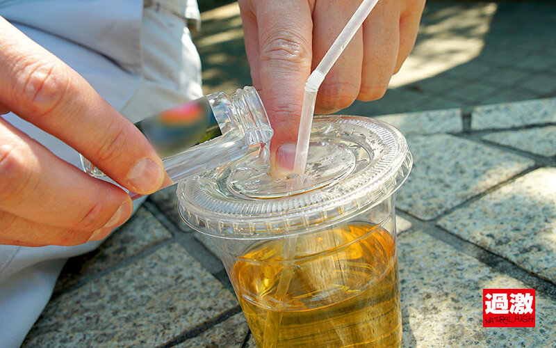 路上で電話をかけていた営業所の女性社員の飲み物に、正体不明の犯人が密かに違法薬物を混入。それに気づかず、混入された液体を飲んでしまった彼女は、駐輪場でたちまち体がヒリヒリする感覚に襲われる。体温は異常に上昇し、大量に汗をかき、コントロールを失う。